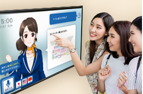 多言語対応の対話型案内サービスや災害情報コンテンツ配信、人感センサーや顔認証、AR技術等のデバイスとの連携など多彩なコンテンツにより、お客さまの目的に応じた効果的な活用を支援します。